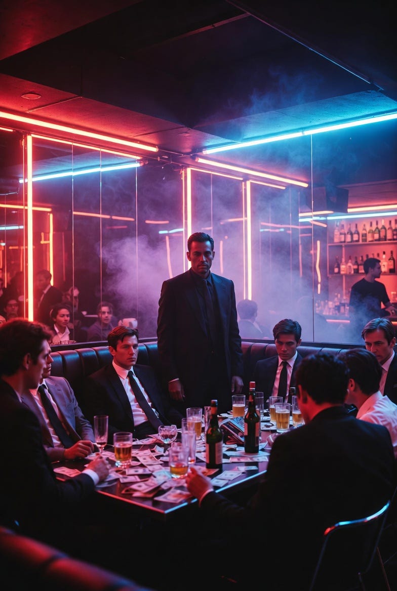 Wall Street’s golden boys had claimed the back corner, a nest of Armani suits and loosened ties. The table was a battlefield of empty glasses, crumpled bills, and stray lines of cocaine glittering in the low light.